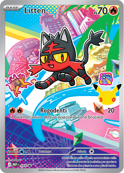 Il viaggio di tutti gli Allenatori di Pokémon inizia con un primo compagno d’avventura: un amico leale che rimane al tuo fianco anche nei momenti più difficili. Rivivi le tue avventure preferite e celebra il legame tra Allenatori e Pokémon con una busta di espansione che include tre delle nove possibili carte promozionali in stile rara illustrazione dedicate ai primi compagni d’avventura di Kanto, Sinnoh e Alola. Troverai anche due buste di espansione del GCC Pokémon aggiuntive e un divertente foglio di adesivi che mettono in mostra i primi compagni d’avventura.
